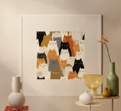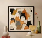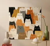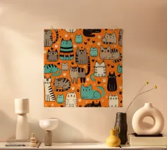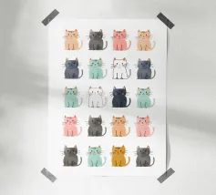 Questo motivo illustrativo di gatti presenta adorabili gatti stilizzati disposti in un design affascinante e moderno. Perfetta per gli amanti dei gatti, questa giocosa opera d'arte aggiunge personalità e calore a qualsiasi spazio. Ideale come opera d'arte da parete, carta da parati o stampa per motivi di gatti, illustrazione di gatti, arte di gatti carini, arte da parete giocosa, disegno di motivi di gattini, illustrazione di animali, arredamento di vivai, regalo per amanti dei gatti, stampa d'arte stravagante, opera d'arte moderna per animali domestici, gatti dei cartoni animati, motivo ripetuto, arredamento accogliente per la casa, arte da parete per la camera da letto, design di gatti kawaii, arredamento a tema animali domestici, stile di carta da parati per gatti, poster di illustrazioni, stampa estetica di gatti, opera d'arte adorabile.