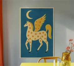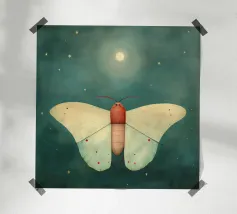 Una mitica falena elementare svolazza in una ricca notte verde acqua, con le sue ali verde salvia accentuate da motivi a goccia dorati e delicate antenne arricciate. Incorniciata da stelle fluttuanti e da una luna crescente, la creatura sognante unisce la brezza marina alla meraviglia cosmica. Stampato su carta opaca d'archivio, ogni venatura delle ali e ogni macchia scintillante rimane intatta. Ideale per studi creativi, angoli di lettura o camere da letto che desiderano un punto focale calmo e curioso, celebra la trasformazione, l'esplorazione e la poesia del volo.