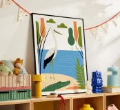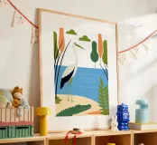 Scoprite la bellezza della natura con un tocco di umorismo in questa opera d'arte con una cicogna e un coccodrillo come amici. I colori vivaci e i disegni unici creano un'atmosfera fresca e divertente.