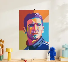 Coco in stile WPAP è un ritratto geometrico audace e colorato del famoso calciatore francese. Utilizzando tinte vivaci e forme spigolose, l'opera d'arte WPAP (Wedha's Pop Art Portrait) cattura la calma determinazione e il look iconico di Coco, riflettendo la sua eleganza, forza e abilità sul campo da calcio.