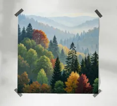 Colourful trees in a forest on a mountain carta hahnemühle