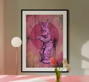 Un'illustrazione espressiva a inchiostro e pennarello di un coniglio umanoide in bilico tra movimento e immobilità.