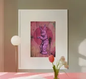 Mescolando l'umorismo surreale con la crudezza del tratto, questo lavoro esplora l'identità, il gioco e la strana tensione tra travestimento e verità.
