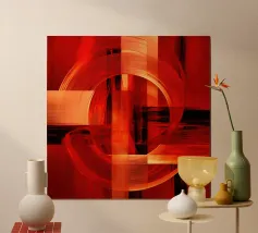 Un'audace esplorazione della struttura attraverso una vivida astrazione. Dominata da strati di cremisi, arancione e corallo, questa composizione dinamica intreccia forme geometriche con pennellate espressive, creando un'energia ritmica che sembra architettonica ma emotiva. Il gioco di angoli acuti e sfumature morbide evoca movimento, calore e vitalità: un pezzo forte per qualsiasi spazio moderno.