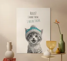 Questo gatto ha semplicemente tutto: è fresco, elegante e con un tocco di coolness! Con la sua gomma da masticare turchese e il suo sguardo innocente, diffonde puro buonumore ed è il motivo perfetto per chiunque ami l'energia positiva e l'umorismo. Il design moderno e minimalista combina una sottile illustrazione in bianco e nero con un fresco accento turchese; semplice ma espressivo. Un must per i fan dei gatti, per gli amanti del design e per chiunque voglia farsi notare: casual, moderno e con un pizzico di umorismo.
