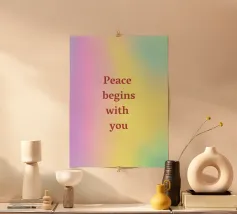 "Create Your Calm" (Crea la tua calma) in una tipografia moderna e audace con una sfumatura di colore dall'azzurro al rosa. Lo sfondo color pastello enfatizza lo stato d'animo calmo e consapevole, ideale per la cura di sé, il benessere e i contenuti d'ispirazione.