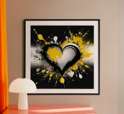 Cuore a macchie di colore nero, giallo carta hahnemühle