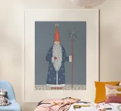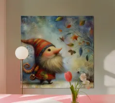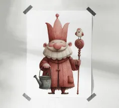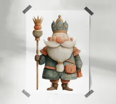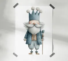 Ded Moroz stilizzato, la leggendaria figura invernale del folklore russo. Con il suo alto cappello a punta, il lungo mantello decorato con fiocchi di neve e il bastone di ghiaccio ornato, sembra un guardiano dell'inverno. Le linee chiare, i colori tenui e gli ornamenti minimalisti conferiscono alla figura un'espressione al tempo stesso tradizionale e moderna. Un suggestivo omaggio alle usanze invernali russe e alla narrazione di fiabe.