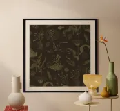 Forme morbide e ondulate si muovono su una ricca tela color oliva, introducendo profondità e intimità nel vostro spazio. Questo motivo conferisce un accento sottile e drammatico che si armonizza perfettamente con le palette di design contemporanee e tradizionali.