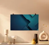 Questo disegno astratto presenta forme geometriche blu stratificate su uno sfondo blu intenso, ideale per essere utilizzato come sfondo creativo o come design per il desktop che migliora l'estetica visiva.