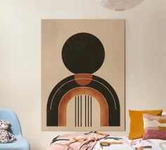 Questo design colpisce per l'armonia degli archi e per la palette di colori caldi e terrosi in marrone, nero e arancione. Le linee geometriche pulite e il sottile tocco vintage lo rendono un'attrazione senza tempo per qualsiasi casa moderna o nostalgica. Perfetto per l'arte da parete, i cuscini o gli accessori per la casa, per dare alla vostra stanza uno stile elegante e unico.