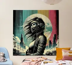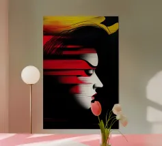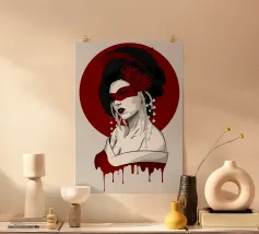 Una misteriosa demonessa con una benda e seducenti labbra rosse domina questa composizione oscuramente erotica. L'estetica grunge ricorda i manifesti punk degli anni '80, mentre la scritta "Spooky" in rosso sangue rafforza l'atmosfera di Halloween. I contrasti in bianco e nero con accenti rossi mirati creano una tensione drammatica. Questo provocatorio mix di gotico e street art trasforma la moda in dichiarazioni ribelli, perfette per chiunque ami il lato oscuro!