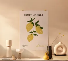 Questo colorato design retrò combina limoni e forme vivaci in blu e giallo per creare un'opera d'arte fresca e moderna. Ispirato alla leggerezza estiva e al fascino mediterraneo, porta freschezza e buonumore in ogni casa. Perfetto come murale, tazza o accessorio per la casa - ideale per gli amanti della grafica moderna, dei motivi di frutta e delle decorazioni estive.
