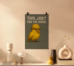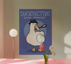 Un simpatico pulcino giallo tiene in mano una lente d'ingrandimento e chiede ironicamente: "Hai buttato via le prove?" con occhi spalancati e un'espressione giocosa. Il disegno combina elementi di mistero e di umorismo, attirando il senso di curiosità.