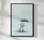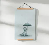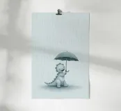 Dinosauro con ombrello sotto la pioggia carta hahnemühle