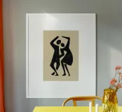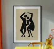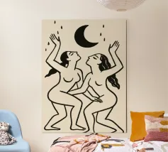 Due figure astratte disegnate in nero sono affiancate, collegate da una linea sottile. Minimalista e in netto contrasto su uno sfondo chiaro, la composizione trasmette vicinanza, equilibrio e una comunicazione silenziosa tra le forme.