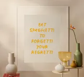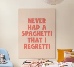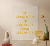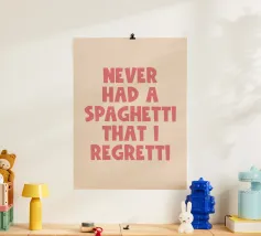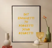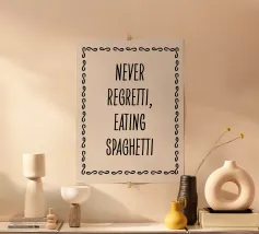 Questa divertente stampa con citazione "Mangia gli spaghetti per dimenticare i tuoi rimpianti" è una gradita aggiunta a qualsiasi cucina o sala da pranzo.