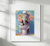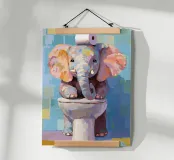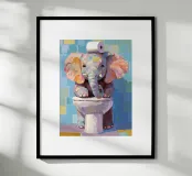 Elefante sul wc con carta igienica carta hahnemühle
