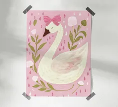 Elegant Swan with Coral Bow Art Print carta hahnemühle