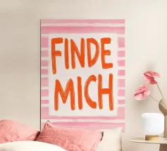 Nei toni vivaci dell'arancione e del viola, questa stampa d'arte "Find me" esprime a grandi lettere e a strisce il desiderio di amore e di scoperta di sé. La tipografia romantica incornicia la ricerca di un partner e lo stare insieme. Ideale per l'estate, il disegno cattura in modo giocoso l'essenza delle relazioni.