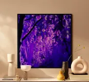 fiori viola e piante luminose in una foresta carta hahnemühle