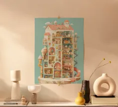 Questa deliziosa illustrazione cattura una vivace casetta dei pompieri sull'albero, piena di lavoro di squadra, azione e gioco. Dallo scivolo per la manichetta, al salvataggio dei gatti e alla guida di mini autopompe, ogni dettaglio invita i bambini a entrare in un mondo di immaginazione e gentilezza. Perfetta per la narrazione e la decorazione delle pareti, questa opera d'arte stimola la curiosità e il coraggio dei piccoli cuori.