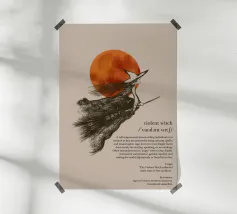 Dieses Motiv zeigt eine fliegende Hexe vor rotem Mond auf beigem Hintergrund mit dem Slogan "On my way to hex patriarchy". Femminista, queer, stolz & kämpferisch. Per tutti coloro che amano l'Hexenkunst, l'Empowerment e il Widerstand - sia come Statement-Poster, che come moderno Wanddeko o come queere Halloween-Deko con Haltung. Sconvolgete il sistema! Le vibrazioni stregonesche incontrano un femminismo audace: Una strega volante dai lunghi capelli neri vola davanti a una luna rossa in un cielo beige. In alto: lo slogan enfatizzante "On my way to hex patriarchy". Perfetto come opera d'arte da parete per chi ama la stregoneria, la magia queer e il design femminista. Ottimo per la decorazione di Halloween