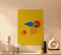 Una vivace disposizione di forme geometriche in vari colori crea un disegno intrigante su uno sfondo di luce soffusa, sottolineando l'arte e la creatività moderne.