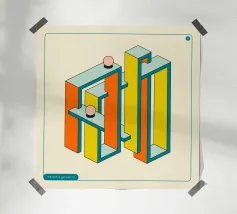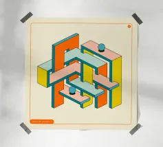 Forme geometriche colorate disposte in un motivo creativo carta hahnemühle
