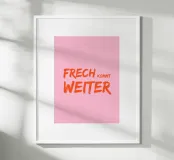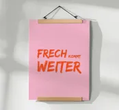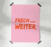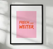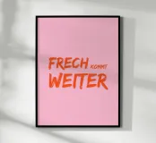 La sfacciataggine vince! Questo poster in arancione su sfondo rosa mostra: un po' di coraggio e di umorismo vi porteranno lontano - perfetto per la casa o l'ufficio.