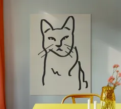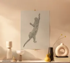 L'ombra di un gatto pieno di vita: Questo motivo gioca con la tensione tra una silhouette chiara e un disegno organico a labirinto. Lo stile ricorda la line art di Keith Haring, ma è più sottile, più giocoso, quasi meditativo. Le innumerevoli microforme invitano a soffermarsi, creando dinamismo in una situazione di stasi. Una dichiarazione visiva per gli spazi creativi e gli amanti dei gatti, in audace equilibrio tra ordine e caos.