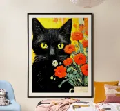 Il gatto nero è spesso simbolo di mistero, eleganza e, in molte culture, di magia o fortuna. Design digitale di Carmen Janosch