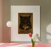 Gatto divertente Una mattina perfetta inizia con una tazza di caffè