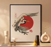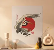 Giapponese con sole e gru carta hahnemühle