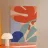 Una composizione astratta ispirata a Maraoui, con forme semplici e ritagliate in colori primari come il rosso, il blu e l'arancione su un morbido sfondo color lavanda. L'opera d'arte è al tempo stesso giocosa e sofisticata.