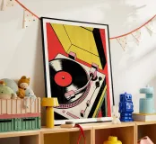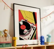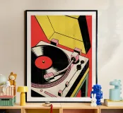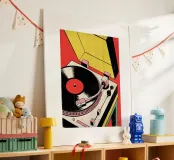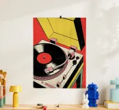 Un tributo visivo alla cultura musicale vintage con questo giradischi in stile pop-art. Colori vivaci, linee grafiche e un'estetica retrò conferiscono a questo design un'energia nostalgica ma moderna. Perfetto per gli amanti della musica, dei dischi in vinile e dell'atmosfera old-school. Questa immagine cattura l'essenza del suono analogico e dello stile retrò in un universo pop e grafico di tendenza.