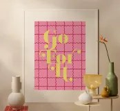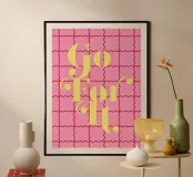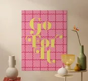 Fate una dichiarazione con questa audace e divertente citazione "Go For It". Una vivace tipografia su un moderno sfondo a scacchi.
