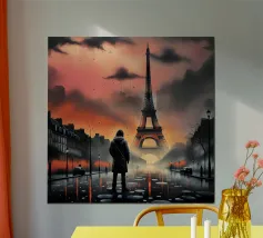 Questo dipinto a olio cattura la Torre Eiffel illuminata dalle profonde sfumature blu della notte parigina. La luce dorata della torre si riflette con grazia sulla Senna, creando una scena tranquilla e romantica. Gli edifici e i lampioni circostanti aggiungono profondità, mentre l'ambiente tranquillo celebra la bellezza di Parigi dopo il tramonto. Quest'opera d'arte è un tributo senza tempo alla Città delle Luci.