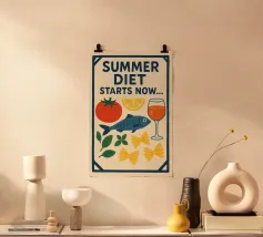 Un poster con citazioni di ispirazione vintage, con toni verdi e arancioni brillanti incorniciati da un bordo retrò ondulato. Progettato per portare positività e colore in qualsiasi spazio moderno.