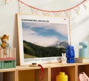 Questa fotografia cattura il tranquillo paesaggio montano intorno a Grindelwald, incorniciato da prati ondulati e dalle imponenti Alpi Bernesi. La luce morbida e i dettagli nitidi evidenziano il contrasto tra la vita del villaggio e le aspre cime sovrastanti. Una scena senza tempo che riflette il fascino tranquillo e la forza naturale di questa iconica valle svizzera.