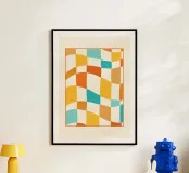 Con questa stampa d'arte astratta, che conferisce al vostro spazio un'atmosfera divertente e vintage, il disegno è caratterizzato da un dinamico motivo a scacchiera ondulato con bordi curvi, che crea un effetto ottico ipnotico. Il disegno presenta un dinamico motivo a scacchiera ondulata con bordi curvi, che crea un effetto ottico ipnotico. La tavolozza calda e vibrante comprende il giallo solare, l'arancione terracotta, l'azzurro e il bianco crema, il tutto sovrapposto a una sottile texture consumata per un'autentica estetica anni Settanta. Questo pezzo è perfetto per aggiungere un tocco di massimalismo retrò o di fascino bohémien a qualsiasi stanza. Disponibile come file di arte digitale di qualità superiore (7000x5000 pixel, 300 dpi), garantisce un'eccezionale fedeltà dei colori e un'ottima resa.