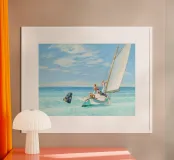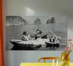 Ground Swell di Edward Hopper - Questo suggestivo paesaggio marino mostra un gruppo di giovani marinai che si muovono sulle onde dell'oceano a bordo di una piccola barca, con l'attenzione rivolta a una boa lontana che emerge dall'acqua. Hopper contrappone il cielo calmo e illuminato dal sole al movimento profondo e ritmico del mare, creando una sottile tensione sotto l'ambientazione serena. Le linee pulite, le ombre morbide e la luce chiara evocano sia l'avventura giovanile che un senso di incertezza di fondo. Una scelta irresistibile per gli amanti dell'arte nautica, dell'arredamento costiero e per chiunque sia attratto da scene marittime potenti e d'atmosfera.