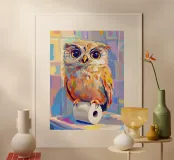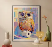 Gufo colorato su rotolo di carta igienica carta hahnemühle