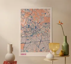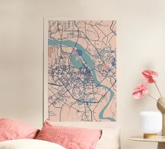 Questa elegante mappa di Hanoi mostra l'energia fluida della capitale vietnamita. Con linee pulite, colori vivaci e dettagli precisi, riflette la vita vibrante e i corsi d'acqua della città - un'opera d'arte moderna per gli amanti della cultura urbana.
