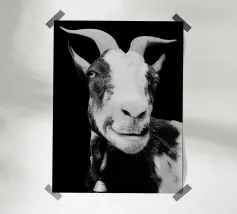 Una buffa pecora e la scritta HELLO THERE in bianco e nero.
