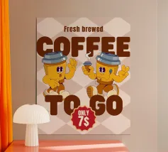 Una tazzina da caffè e un personaggio a forma di cuore sono raffigurati mentre si tengono per mano con la scritta "Ho bisogno di una sola cosa per riscaldare il mio cuore, il caffè".