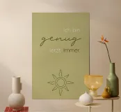 Un dolce promemoria pieno di amore per se stessi. Questo motivo porta pace interiore e accettazione nella stanza. I morbidi toni del verde hanno un effetto di radicamento e armonia, perfetto come promemoria quotidiano: sei abbastanza, così come sei.