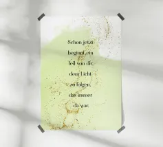 Un dolce promemoria pieno di amore per se stessi. Questo motivo porta pace interiore e accettazione nella stanza. I morbidi toni del verde hanno un effetto di radicamento e armonia, perfetto come promemoria quotidiano: sei abbastanza, così come sei.