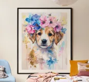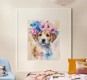 Questo design moderno raffigura un simpatico cucciolo con dei fiori sulla testa. Disegnato con delicati acquerelli e accenti dorati, unisce la bellezza naturale all'eleganza artistica. Le morbide sfumature di colore e lo stile astratto conferiscono a qualsiasi ambiente un'atmosfera romantica e giocosa, ma allo stesso tempo elegante: un vero e proprio colpo d'occhio per la vostra casa.