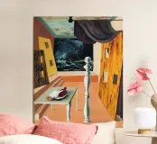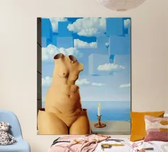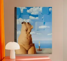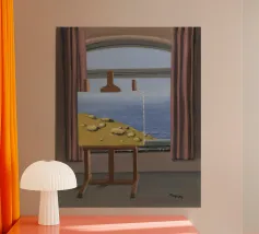 Questo sorprendente dipinto surrealista di René Magritte raffigura una scena di tensione e ambiguità, combinando elementi realistici con accostamenti inaspettati che sfidano la percezione. Attraverso un'attenta composizione e sottili contrasti, Magritte evoca un senso di incertezza, introspezione e mistero poetico. L'atmosfera onirica e stimolante dell'opera la rende un'aggiunta accattivante a soggiorni, studi, studi creativi e interni moderni, dove la sua presenza enigmatica può ispirare riflessioni e conversazioni.